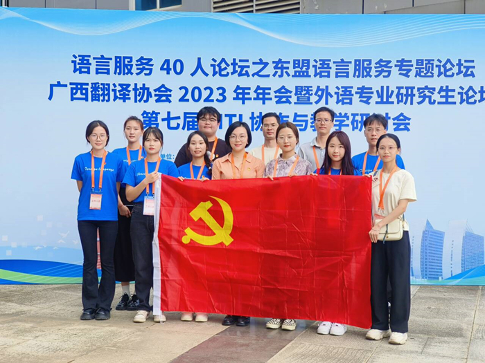 2023年11月10日-11日,语言服务40人论坛之东盟语言服务专题论坛、广西翻译协会2023年年会暨外语专业研究生论坛、第七届MTI协作与教学研讨会在伟德官网举行。为充分发挥员工党员的先锋模范作用,做好论坛的志愿服务工作,公司员工党支部书记郭晶晶老师和11名本科生、研究生党员参与论坛服务工作。