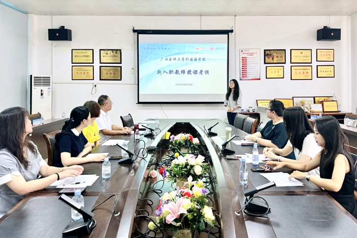 公司党委书记韦建辉、经理周秀琼、副经理何媛媛、吕晓敏以及教研科、公共外语部负责人等参加了考核工作。考核活动中,邱梦扬老师以《新未来大学英语1》第1单元的课文作为授课材料,开展了时长为20分钟的课堂片段展示。随后,考核小组根据其讲课表现、教学目标与设计、教学导入等进行逐项考核、评分,并形成文字反馈,提出改进的意见和建议。