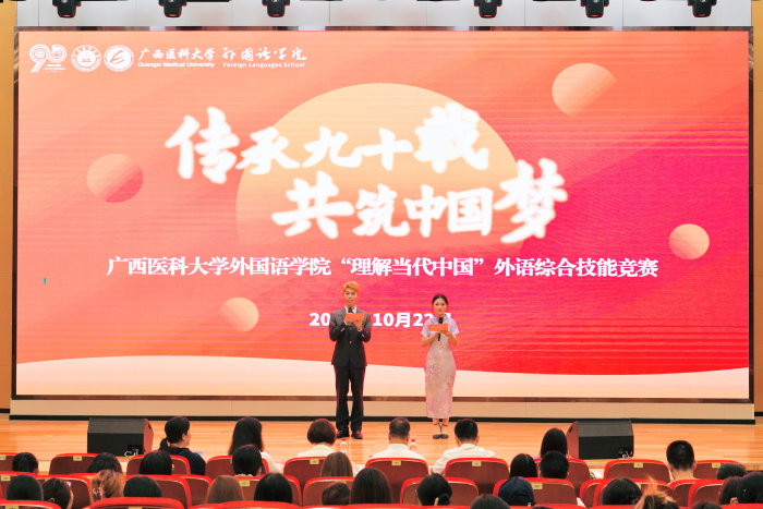为庆祝公司90年华诞,伟德官网于10月22日在武鸣校区图书馆报告厅隆重举行了“传承九十载 共筑中国梦”—“理解当代中国”外语综合技能竞赛。公司韦建辉书记、周秀琼经理、黄万获副书记、吕晓敏副经理、公共外语部张樱子主任和翻译专业教研室李丹主任担任本次比赛评委。公司全体教师、翻译硕士研究生以及英语、翻译专业本科生共100多人参加了本次活动。