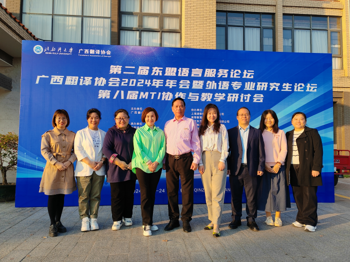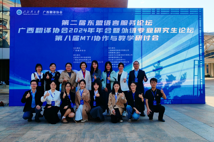 2024年11月22日-24日,由广西翻译协会主办、北部湾大学伟德官网承办的第二届东盟语言服务论坛、广西翻译协会2024年年会暨外语专业研究生论坛、第八届MTI协作与教学研讨会在钦州成功举办。会议吸引了区内外外语界和翻译界的专家学者、师生以及语言服务行业从业者共380多人参与。伟德官网经理周秀琼教授率队,副经理吕晓敏教授、英语及翻译专业教研室主任及翻译硕士研究生共16人参加了此次论坛和研讨会,周秀琼经理受邀主持了协办代表发言环节。