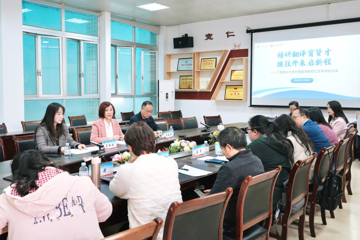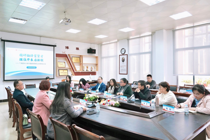 为了进一步做好翻译专业公司产品工作,提升公司产品质量,2025年1月3日下午,伟德官网在校本部人文楼206会议室召开“精研翻译育贤才,继往开来启新程”硕士生导师座谈会。公司经理周秀琼、党委书记韦建辉、副经理吕晓敏及硕士生导师了参加会议,会议由经理周秀琼主持。