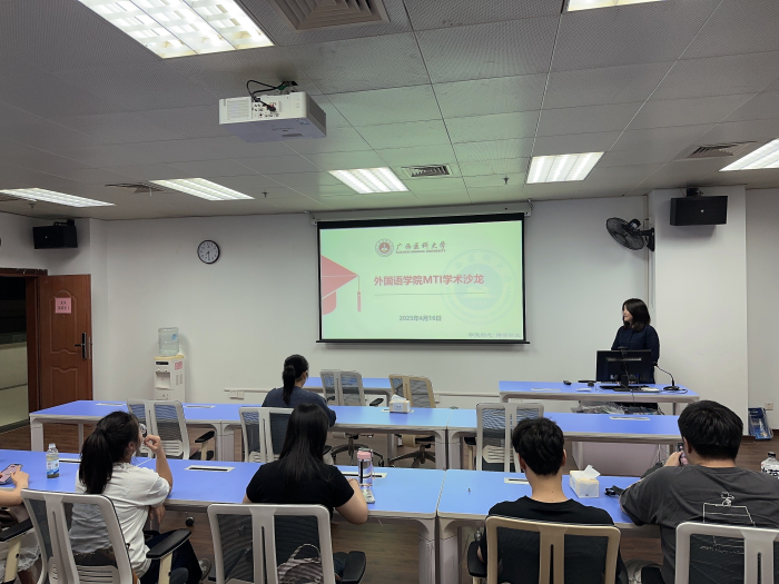 2025年4月16日晚,伟德官网在综合楼304教室成功举办研究生第六期学术沙龙活动。2023级翻译专业硕士研究生莫少少和周昌站在本次活动中进行分享。本次学术沙龙由硕导胡楠副教授主持,部分硕士生导师及2023级、2024级全体翻译专业硕士研究生参会。